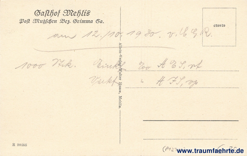 Beschriftung hinten: Gasthof Mehlis, Post Mutzschen Bez. Grimma Sa., R 30255, 429929