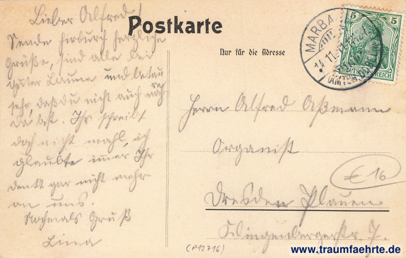 Stempel: Marbach (Amtsh. Döbeln), 14.11.11 11–12V.
