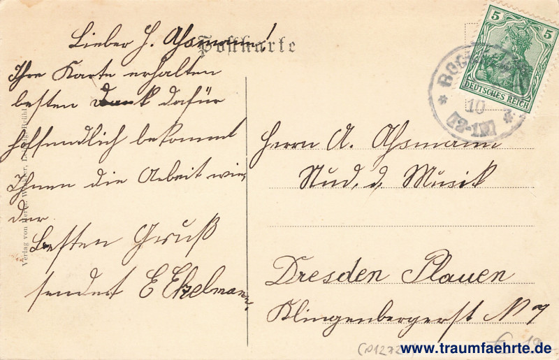 – Details – Jahr: ca. 1905 Status: gelaufen 1910 Beschriftung vorne: Gruss aus Kroptewitz, Materialwarenhandlg. v. Emil Rändler, Gasthof, Rittergut, Schule Beschriftung hinten: Postkarte, Verlag von Herm. Winkler, Leipzig, Brühl 5 Stempel: Bockelwitz, 1[…] 8 10, 12–1[…] Hinweis: