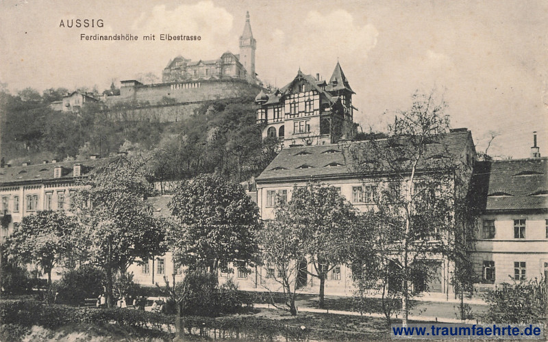 Beschriftung vorne: Aussig, Ferdinandshöhe mit Elvestrasse, Restaurant
