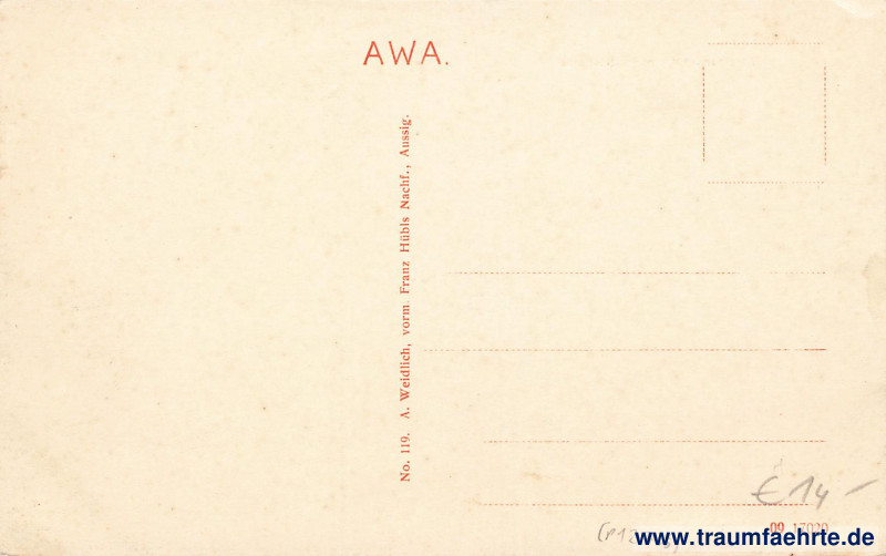 Beschriftung hinten: AWA. No. 119 A. Weidlich, vorm. Franz Hübls Nachf., Aussig. 09 17020