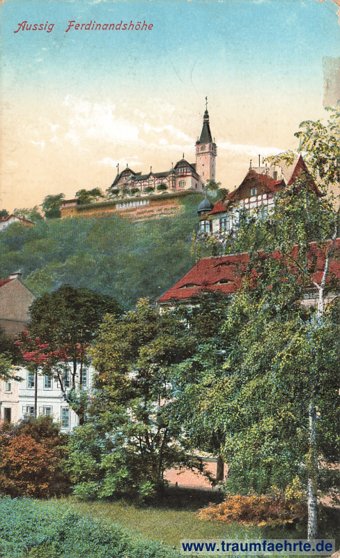 Ansichtskarte Ferdinandshöhe / Větruše in Aussig / Ústí nad Labem [ Permalink ]Kategorie: Gaststätten & Hotels