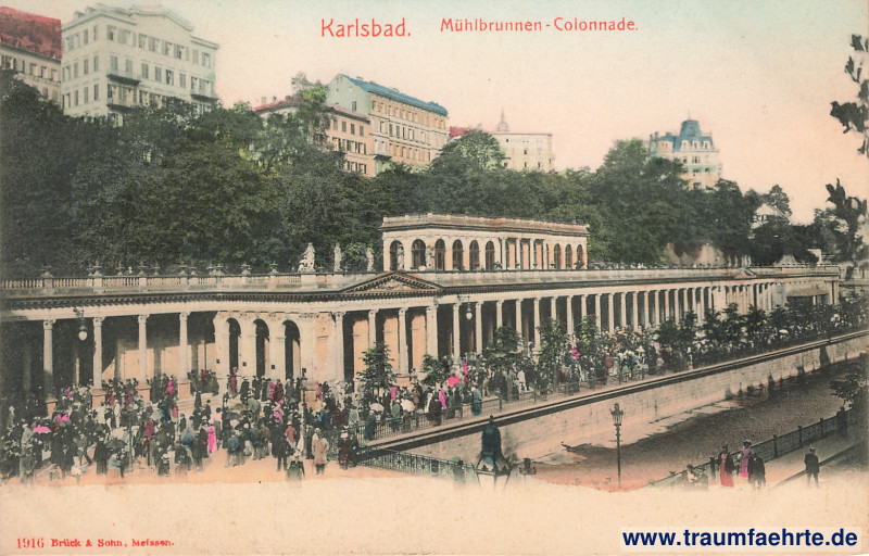 – Details – Year: 1901 Postal state: postally unused Inscription front: Karlsbad. Mühlbrunnen-Colonnade. 1916 Brück & Sohn, Meissen. Inscription back: Correspondenz-Karte. Postmark(s): none Please note: