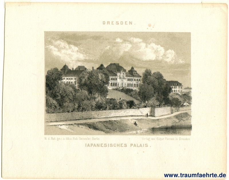 Beschriftung: Dresden. Japanisches Palais. N. d. Nat. gez. u. lith. v. Rob. Geissler, Berlin. Verlag von Edgar Pierson in Dresden.