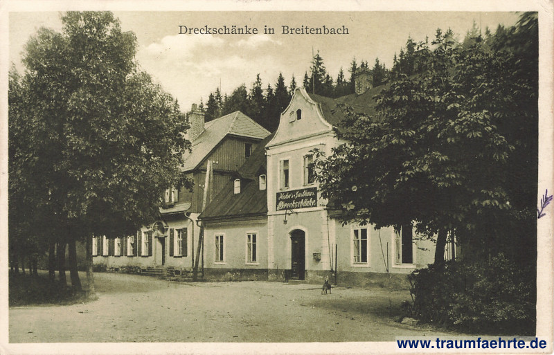 Inscription front: Dreckschänke in Breitenbach, Hahn's Gasthaus Dreckschänke
