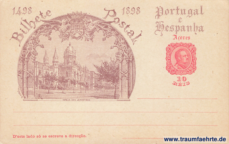 Beschriftung vorne: 1498, 1898, Bilhete Postal, Portugal e Hespanha, Açores, 10 Réis, D'este lado só se escreve a direççào.