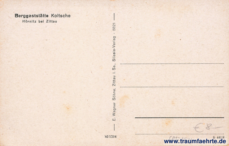 Inscription back: Berggaststätte Koitsche, Hörnitz bei Zittau, E. Wagner Söhne, Zittau i. Sa., Silesia-Verlag – 5821, M/1294, b 4638