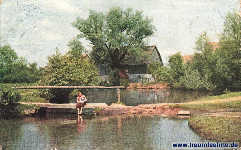 – Details – Year: ca. 1910 Postal state: postally unused Inscription front: no text Inscription back: M&B, Meissner & Buch, Leipzig (Germany). Künstler-Postkarten Serie 1907. „Am Dorfteich.“ Ges. gesch. Postmark(s): 2x Herrnhut, * c *, 25.9.13. 1–2N. Please note: