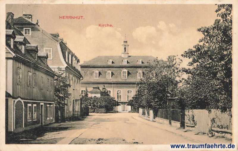 Postcard Church hall of Moravian Church Herrnhut in Herrnhut (city) [ Permalink ]