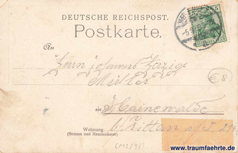 Inscription back: Deutsche Reichspost, Postkarte. An … in … Wohnung (Straße und Hausnummer) …