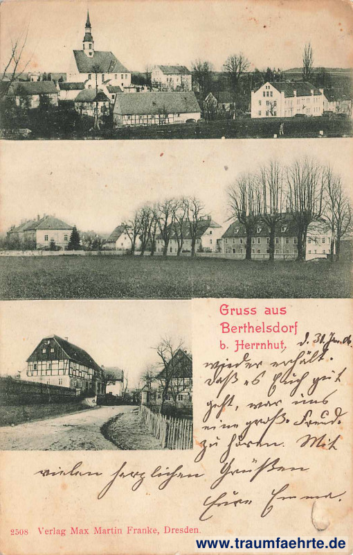 Beschriftung vorne: Gruss aus Berhelsdorf b. Herrnhut. 2508 Verlag Max Martin Franke, Dresden.