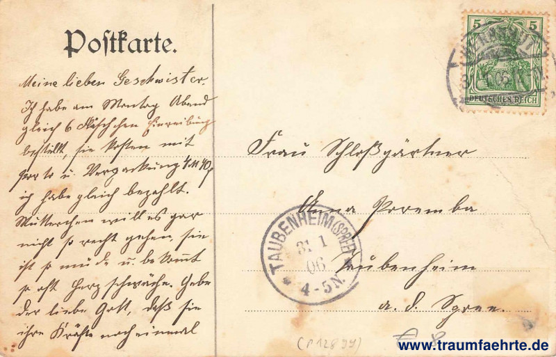 Stempel: Herrnhuth, […], 31.1.06.12–1V.; Taubenheim (Spree), * *, 31 1 06, 4–5N.