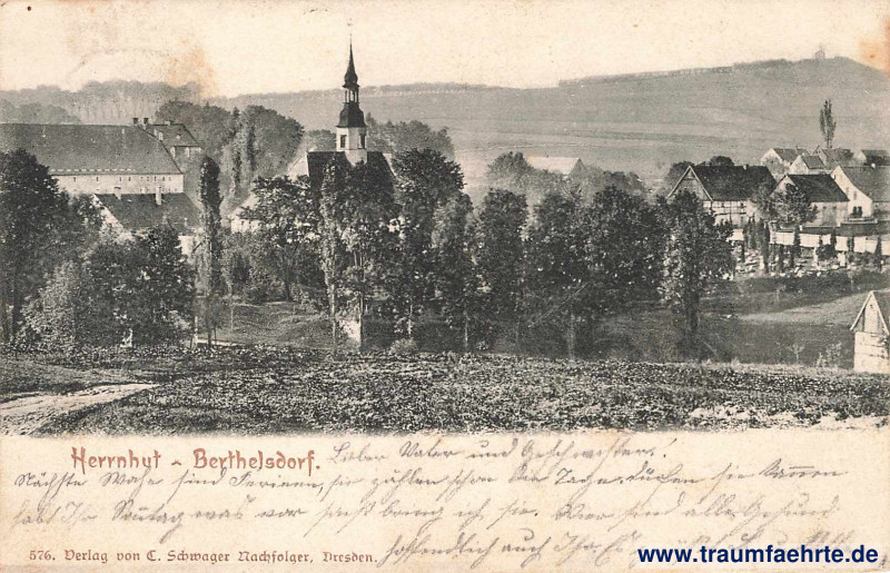 Beschriftung vorne: Herrnhut – Berthelsdorf. 576. Verlag von C. Schwager Nachfolger, Dresden.