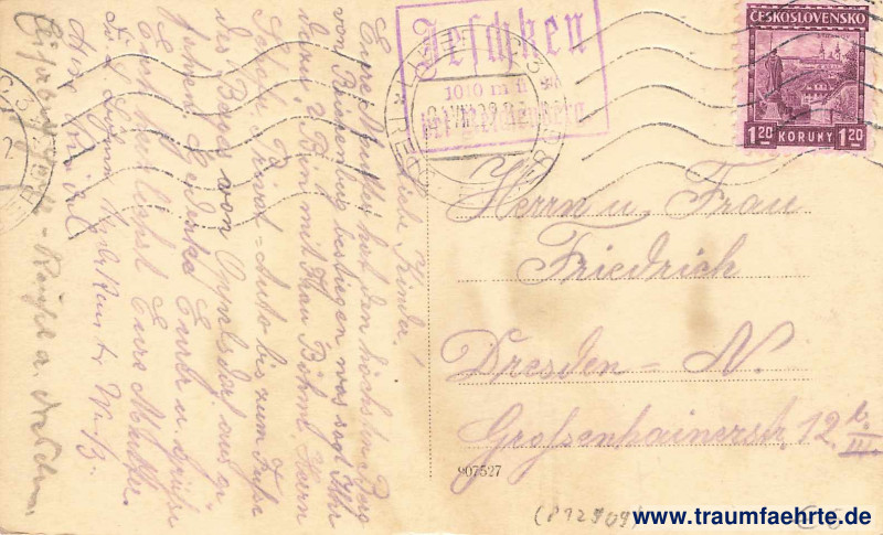 Stempel: 1½x Liberec, Reichenberg, 24 VIII 2[9] 22 ~~~; Jeschken bei Reichenberg. 1010 m ü. M.