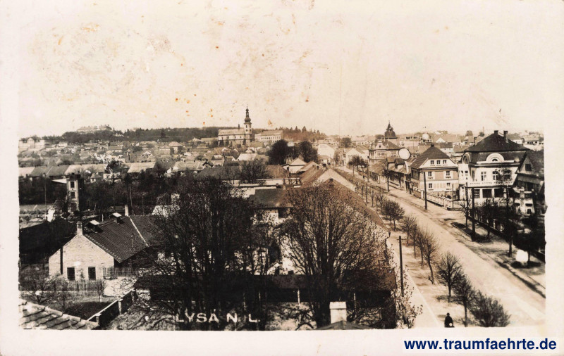 – Details – Jahr: ca. 1920 Status: gelaufen ohne Briefmarke, Beschriftung vorne: Lysá n. L. Beschriftung hinten: kein Text Stempel: […], 22.[…] Hinweis: