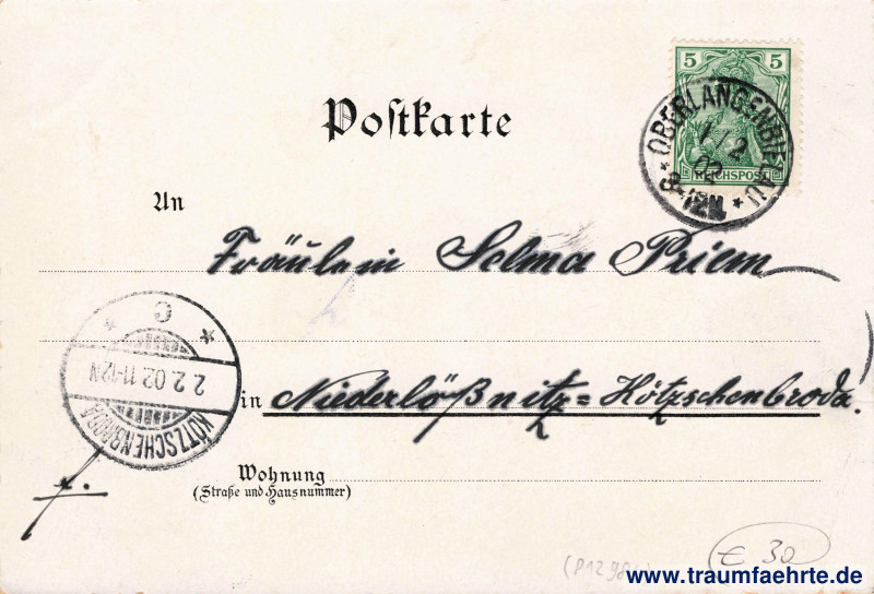 Stempel: Kötzschenbroda, * c *, 2.2.02.11–12N; Oberlangenbielau, * *, 1 / 2 02, 3–12N.