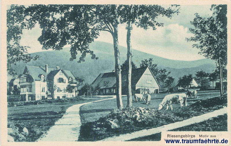 Keywords: Guesthouses, Inns, Cows, Animals, Paths, Meadows, Mounts, Giant Mountains / Krkonoše / Karkonosze, Silesia, Formerly German Eastern Territories