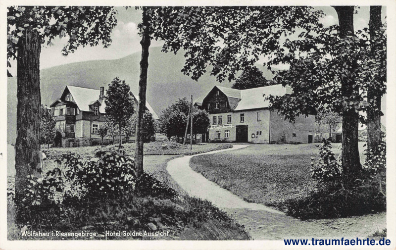 Inscription front: Wolfshau i. Riesengebirge, Hotel Goldene Aussicht.