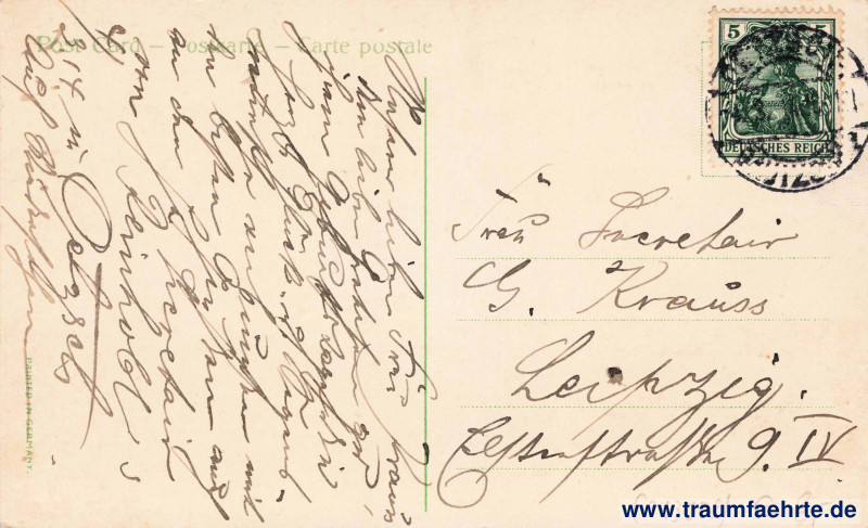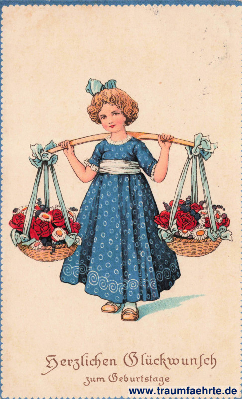 – Details – Jahr: ca. 1910 Status: gelaufen 1914 Beschriftung vorne: Herzlichen Glückwunsch zum Geburtstage Beschriftung hinten: Post Card – Postkarte – Carte postale, Printed in Germany. Stempel: [… Bautzen?], –4.3.14 10–11N. Hinweis: