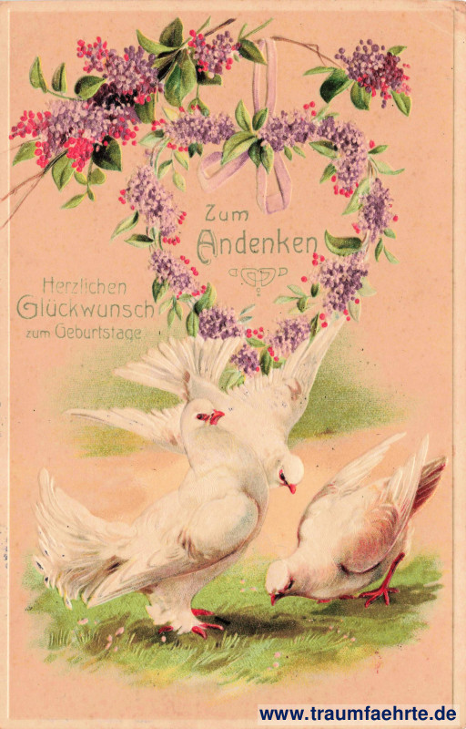 Schlagworte: Glückwünsche, Geburtstag, Tauben, Vögel, Tiere, Blumen, Reliefkarten, Künstlerkarten