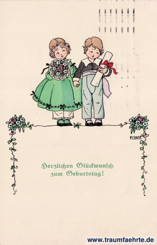 Schlagworte: Glückwünsche, Geburtstag, Kinder, Jungen, Mädchen, Kleider, Kleidung, Blumen, Künstlerkarten