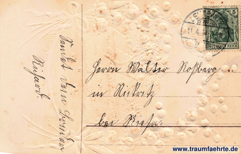 Stempel: Leutnitz […], 11.4.[14?] 7–8N.