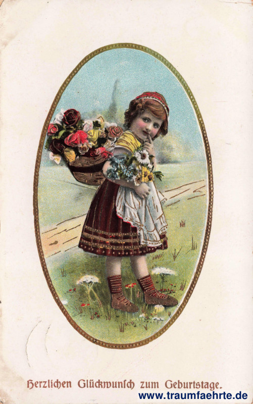 Schlagworte: Glückwünsche, Geburtstag, Mädchen, Kleider, Kleidung, Wiesen, Künstlerkarten, Reliefkarten, Gold, Rahmen