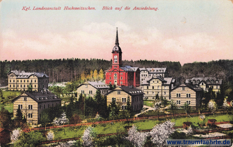 Beschriftung vorne: Kgl. Landesanstalt Hochweitzschen. Blick auf die Ansiedlung.