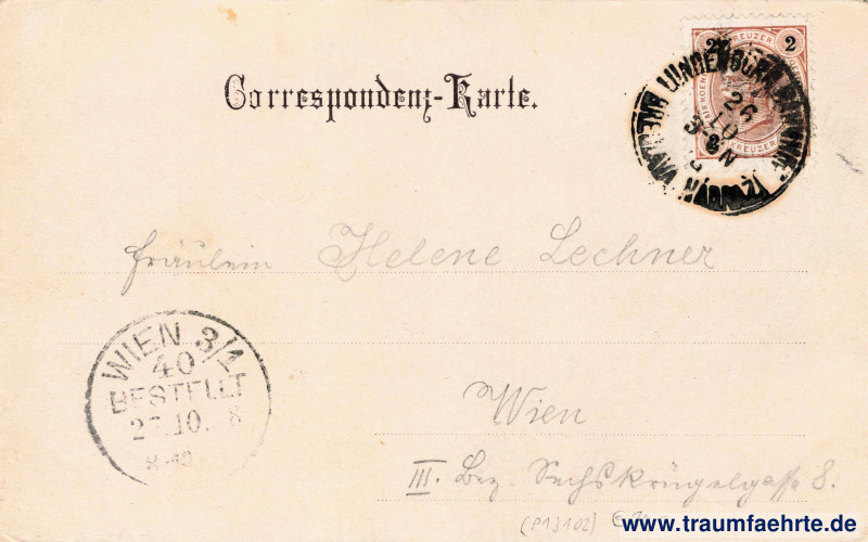 Stempel: Lundenburg Bahnhof, Břeclav nádraží, 26 10 [98], 3–[…]N; Wien 3/1,40, bestellt, 27.10.[9]8 8–10 […]