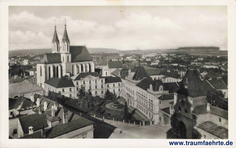 Schlagworte: Kirchen, Türme, Plätze, Schulen, Zäune, Parks, Brunnen, Feldpost, Mähren, Zweiter Weltkrieg