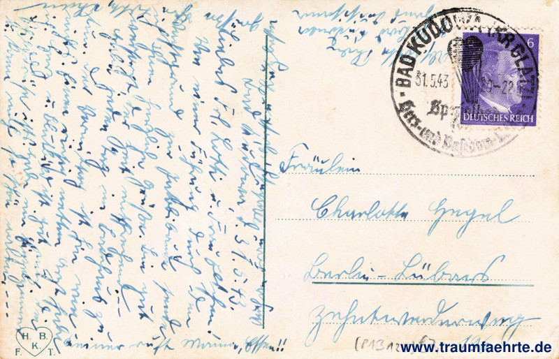 Stempel: Bad Kudowa (Kr. Glatz), Spezialbad für Herz- und Basedow-Leiden, 31.5.43, 21–22