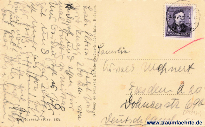 – Details – Jahr: 1939 Status: gelaufen 1939 Beschriftung vorne: Komárom, Városháza a Klapka-szoborral Beschriftung hinten: Törvényesen védve. 1939. Gardony és Fenyvesi képeslevelezőlap-kiadóvállalat, Budapest. Stempel: Komárom, * 2 *, 1939 Aug […] Hinweis: