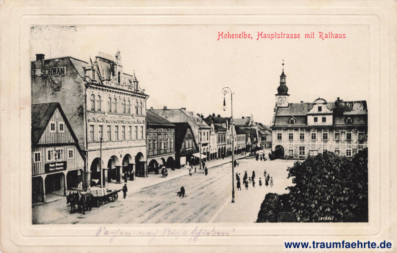 Beschriftung vorne: Hohenelbe, Hauptstrasse mit Rathaus