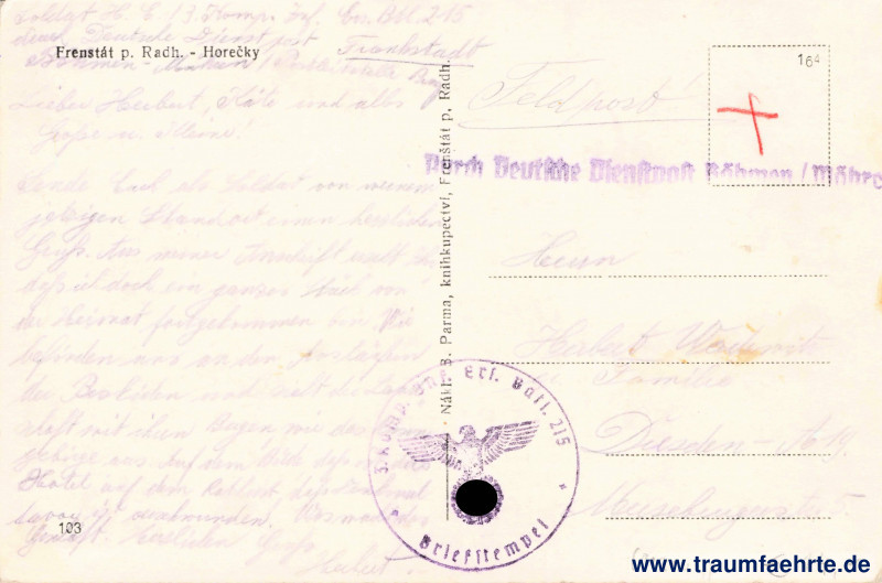 Inscription back: Frenštát p. Rad. – Horečky, 103, Nákl. B. Parma, knihkupectvi, Frenštát p. Radh., 164