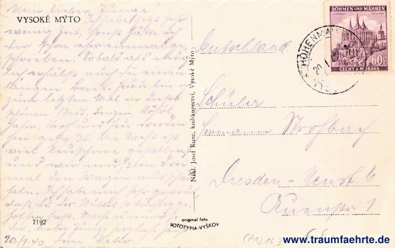 Beschriftung hinten: Vysoke Mýto, 7192, original foto Fototypia Vyškov, Nákl. Josef Kunc, knihkupectví, Vysoké Mýto