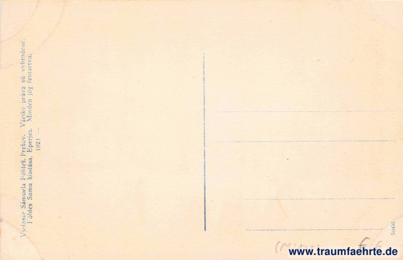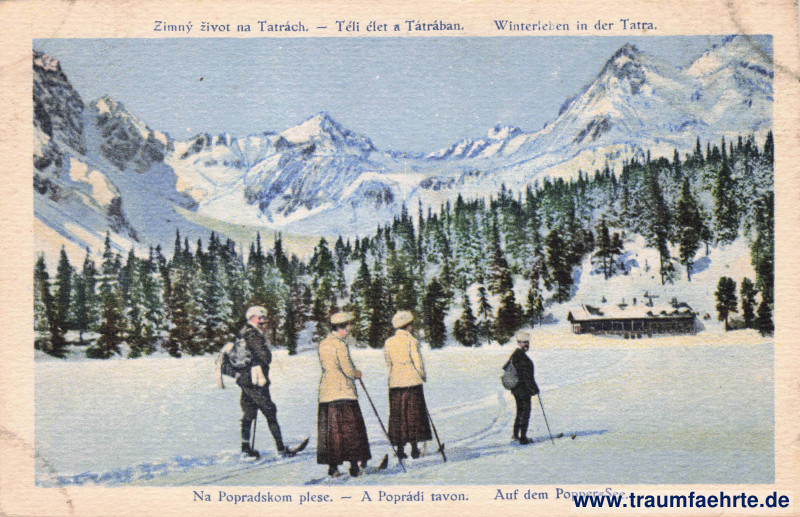 – Details – Jahr: 1921 Status: ungelaufen Beschriftung vorne: Zimný život na Tatrách. – Téli élet a Tátrában. Winterleben in der Tatra. Na popradskom plese. – A Poprádi tavon. Auf dem Popper-See. Beschriftung hinten: Vydanie Sámuela Földeš, Prešov. Všetky práva sú vyhradené. Földes Samu kiadása, Eperjes. Minden jog fentartva. 1921 –, 5066 Stempel: keine Hinweis: