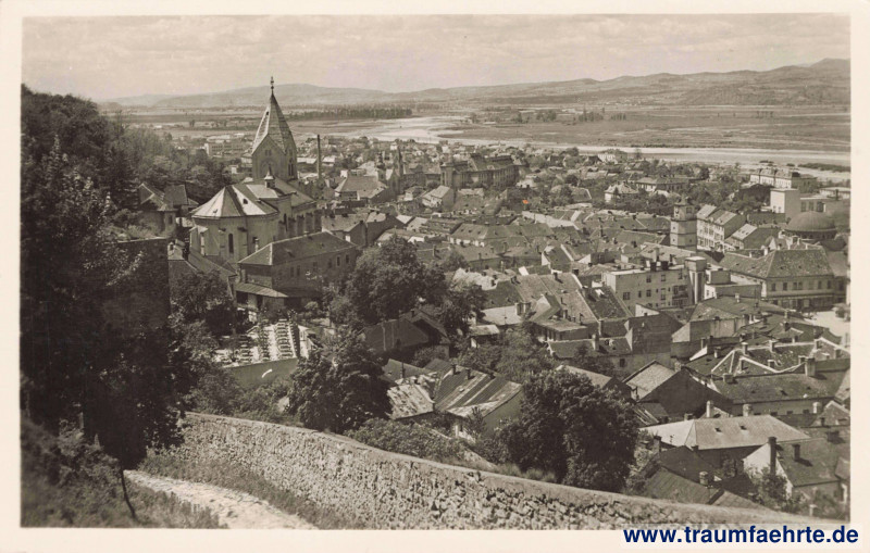 Ansichtskarte Panorama Trentschin / Trenčín in Trentschin / Trenczin / Trenčín [ Permalink ]Schlagworte: Panorama, Kirchen, Türme, Mauern, Waag, Flüsse, Täler, Hügel