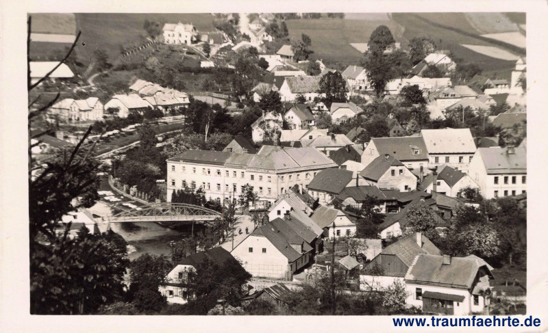Schlagworte: Luftbilder, Panorama, Eckhäuser, Wilde Adler, Flüsse, Brücken, Felder, Zweiter Weltkrieg, Böhmen