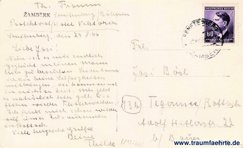 Stempel: Senftenberg * Žamberk, 25.VIII.44[…]