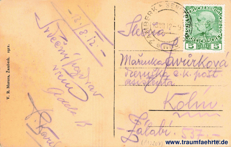 Stempel: Žamberk * Senftenberg [Bhm.], e, 13.VIII.12–9[…]