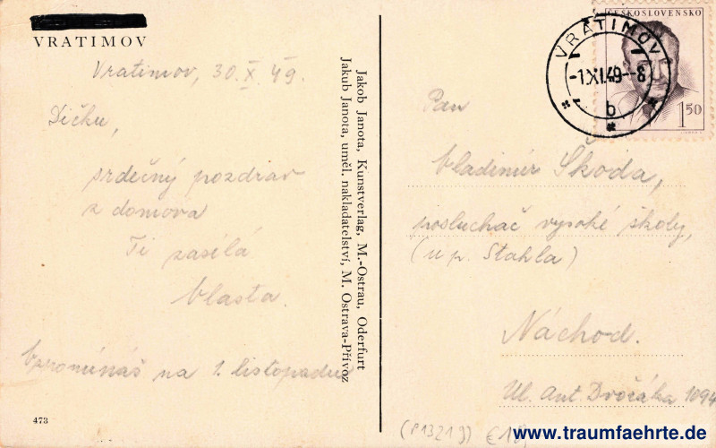 Stempel: Vratimov, * * *, b, –1.XI.49–8