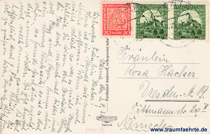 Postmark(s): 2x Varín, […], 4.VIII.33–[1]2