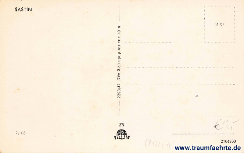 Beschriftung hinten: Šaštín, 7/103, T Tatran, 2493/47 Kčs 2.80 spoplatnené 40 h. 2704700, R 81