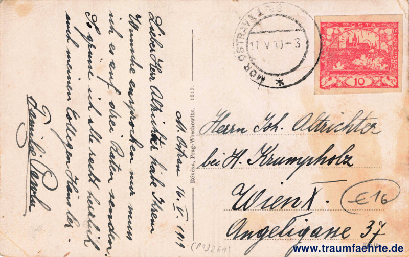 Stempel: * Mor. Ostrava 1 […], 17 V 19 – 3