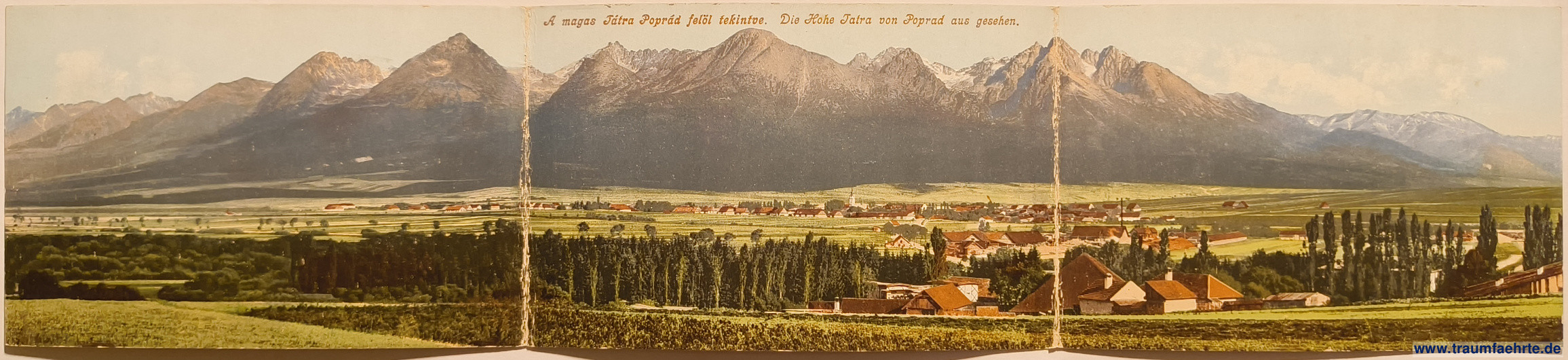 Schlagworte: Panoramakarten, Panorama, Tatra, Gebirge, Berge, Schnee, Täler, Kirchen, Felder, Wald