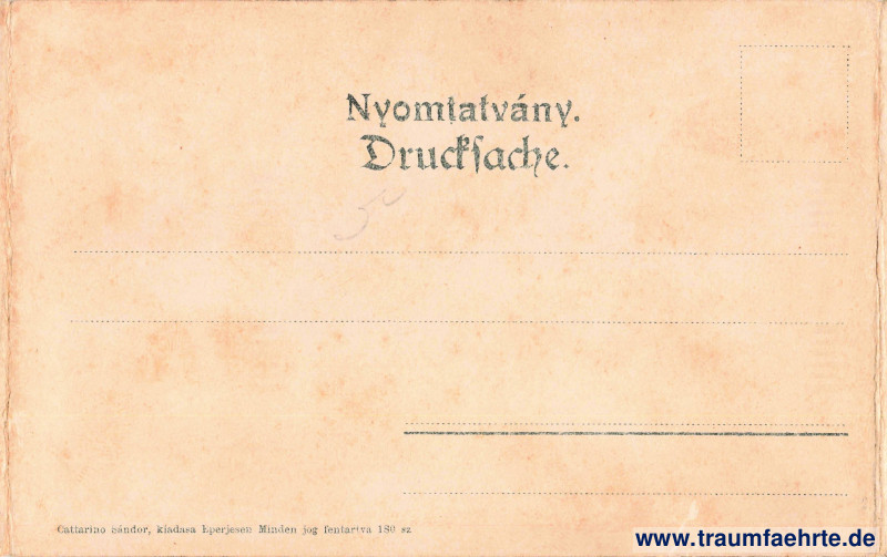 Beschriftung hinten: Nyomtatcány. Drucksache. Cattarino Sándor, kiadasa Eperjesen Minden jog fentartva 180 sz
