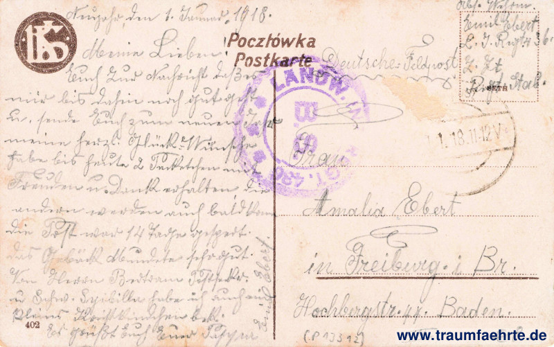 Status: gelaufen ohne Briefmarke (Feldpost), 1918