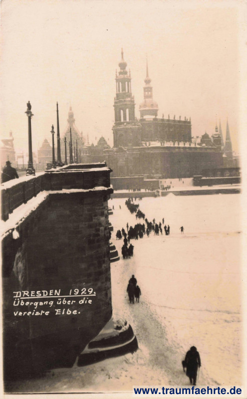 Inscription front: Dresden 1929. Übergang über die vereiste Elbe.