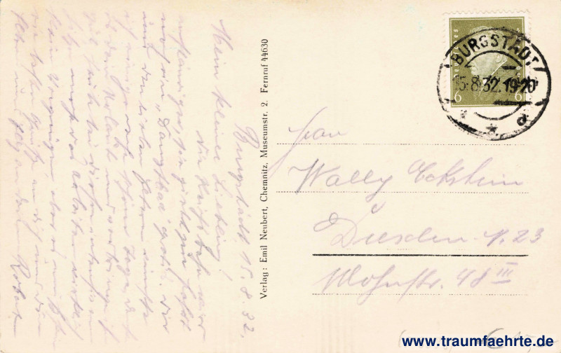 Beschriftung hinten: Verlag: Emil Neubert, Chemnitz, Museumstr. 2. Fernruf 44630