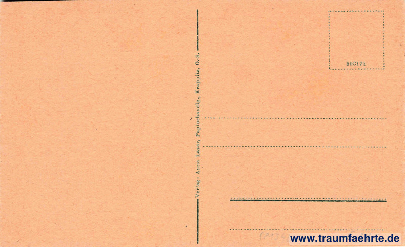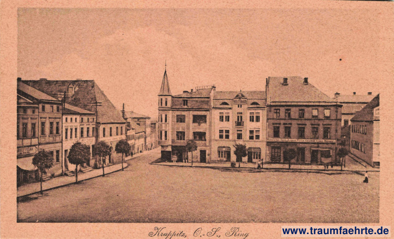 – Details – Year: ca. 1915 Postal state: postally unused Inscription front: Krappitz, O.-S., Ring Inscription back: Verlag: Anna Lazar, Papierhandlg., Krappitz, O.-S. 303171 Postmark(s): none Please note:
